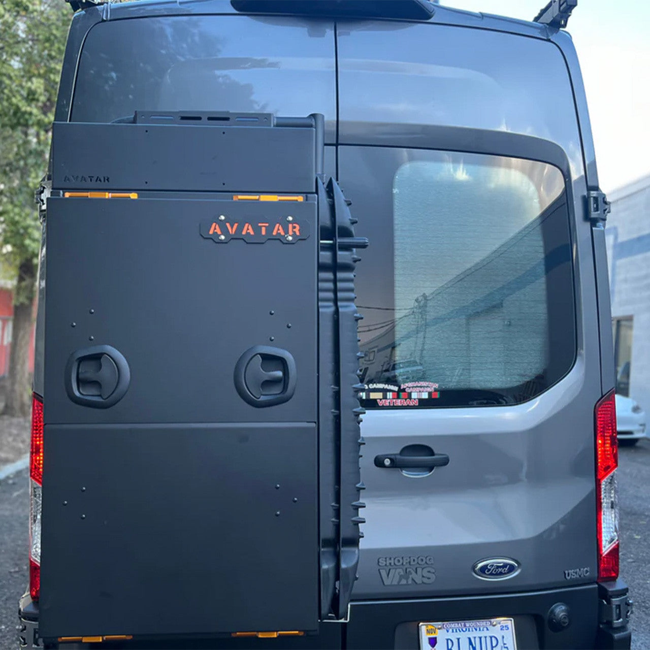 Take your van build to the next level with the Avatar Offroad Mega Van Rear Door Storage Box—a rugged, high-capacity storage solution designed for overlanders, off-grid explorers, and gear haulers. Crafted from heavy-duty aluminum and finished in sleek black powder coating, this box is built to withstand the toughest trails while delivering functional style. Mounting easily to most adventure van rear doors, the Mega Box offers ample storage for tools, camp gear, and outdoor essentials. A built-in flip-down shelf transforms into a convenient workspace—perfect for prepping meals or setting up camp. Engineered for real-world conditions, it keeps your gear protected from water, dust, and the elements.