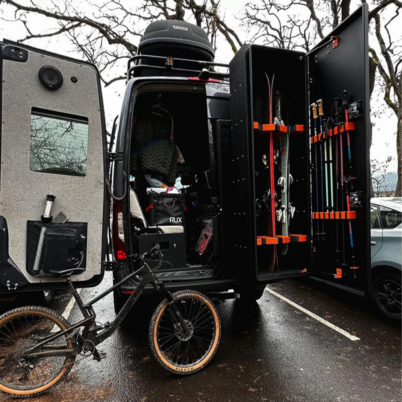 Easily swap the custom ski shelf organizers for solid summer shelves — turning your Ski 6 Box into the perfect place for camping chairs, golf clubs, inflatable kayaks, paddle boards, climbing gear, and more. Built tough to handle any terrain, it’s a must-have for serious adventurers looking for year-round versatility.