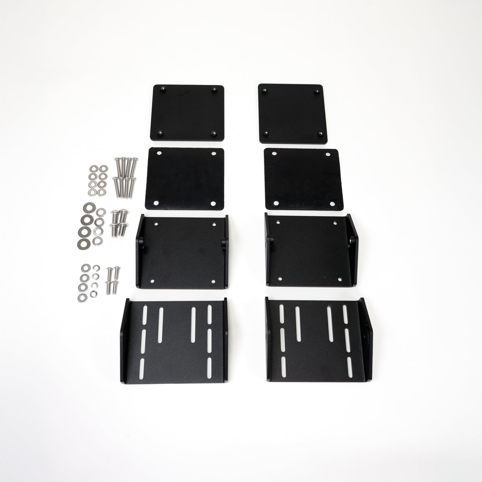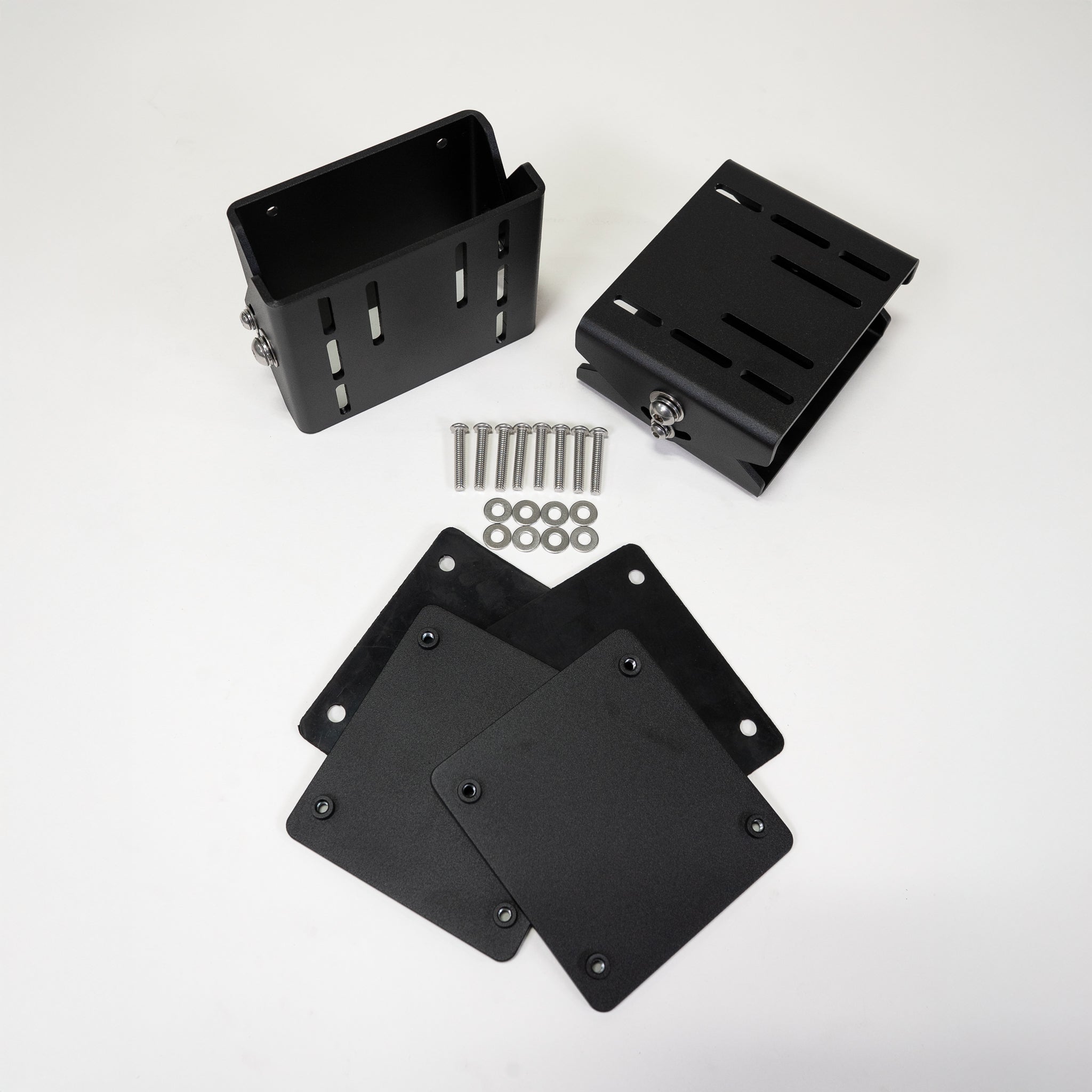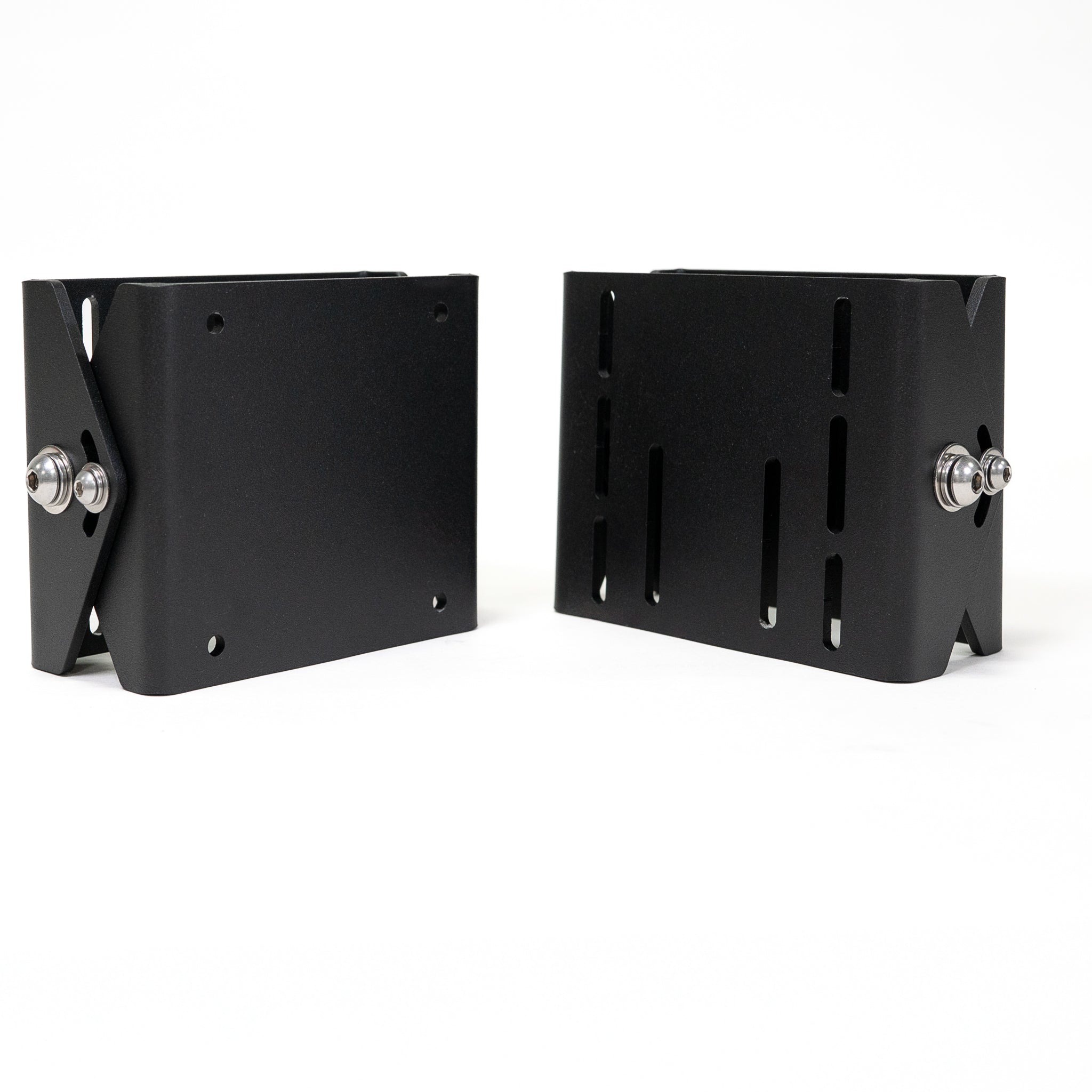 These articulating awning mounts are designed to install awnings on flat or angled exterior surfaces where standard fixed brackets are not suitable. They are commonly used on fiberglass van high tops, vertical RV walls, trailers, and other flat or sloped mounting areas. The articulating design allows the awning to remain vertically aligned even when the mounting surface is angled, helping achieve proper fit and operation across a wide range of installations.