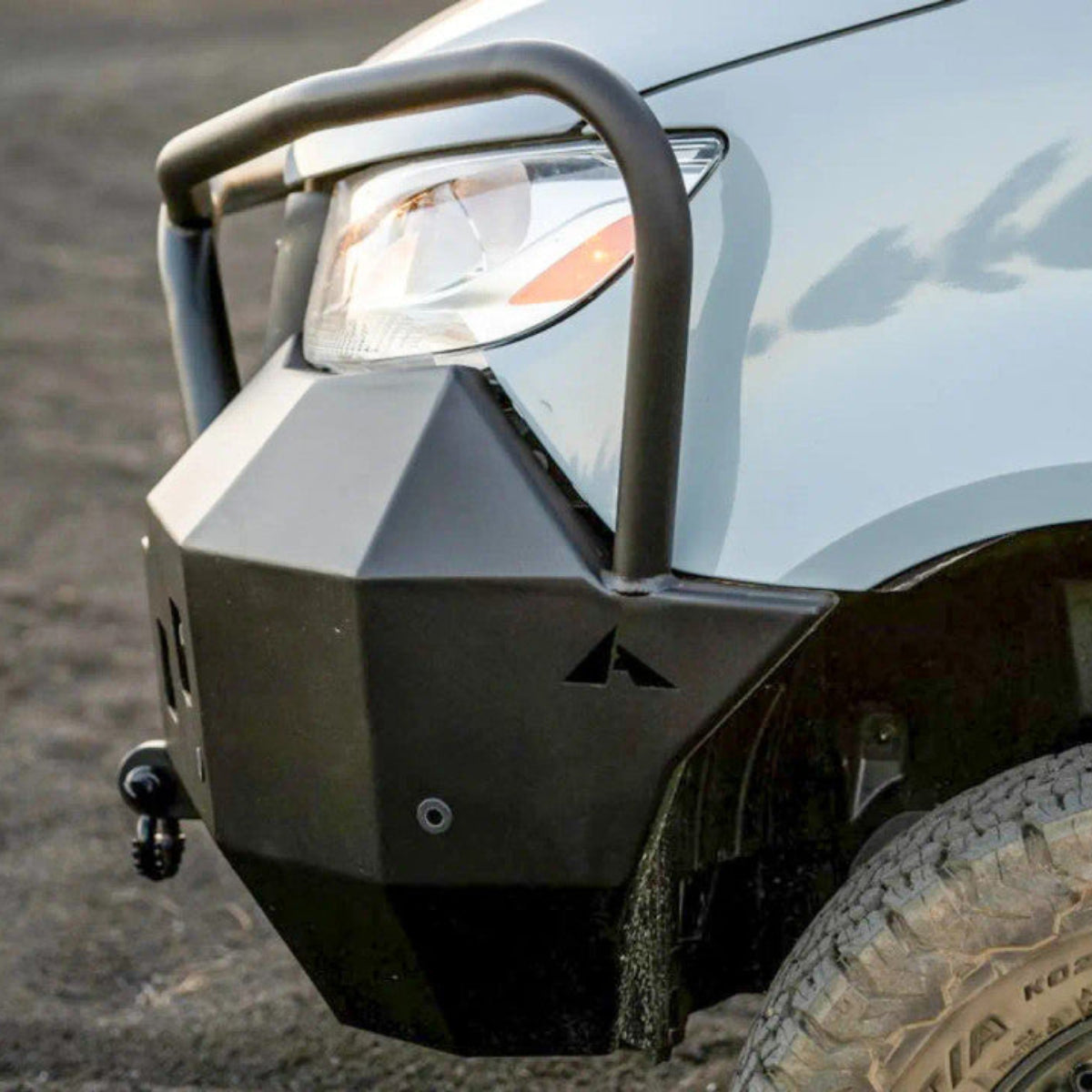 Important: This bumper is compatible with factory sensors and cameras. Due to variations in winch size and design, solenoid relocation may be required depending on the winch used. Accessories such as lights, shackles, and a hitch receiver are not included unless specified.
